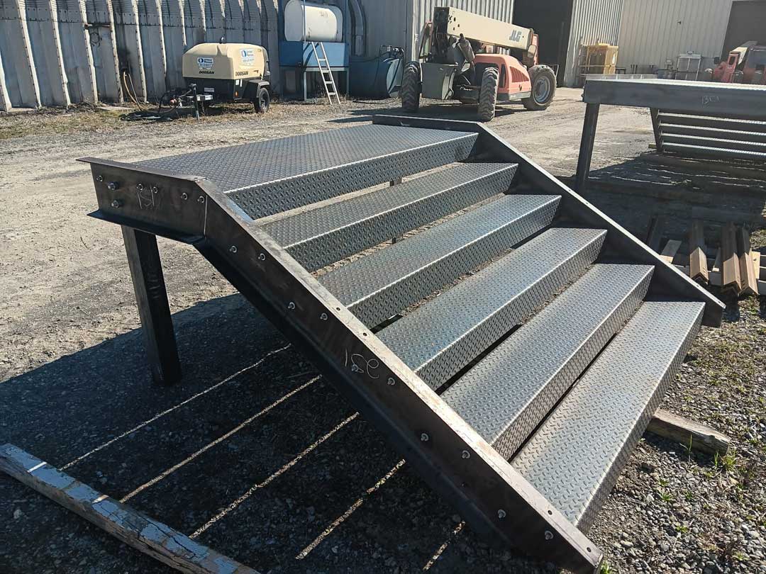 C&M fabricated three complete stair and handrail systems for the Goodwill store in Covington, VA. The project featured C10 stringers throughout with durable 3/16″ treadplate treads. Handrail components were precision-cut using a CNC laser system, providing a clean finished appearance while allowing for efficient shop assembly. Quality fabrication and attention to detail remain central to every project we deliver.